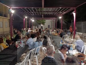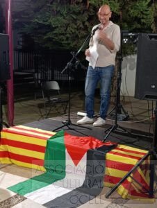 Els versos del poeta de Burjassot van ser els protagonistes d’una vetlada que va començar amb el tradicional sopar de cabasset i va continuar amb un recital popular, presentat pel professor i membre del col·lectiu Ocell, Joanba Martí. L’escenari, presidit per la bandera palestina, va simbolitzar la condemna al genocidi a Gaza, una causa que es va sumar a la reivindicació de la llengua i la cultura valencianes.